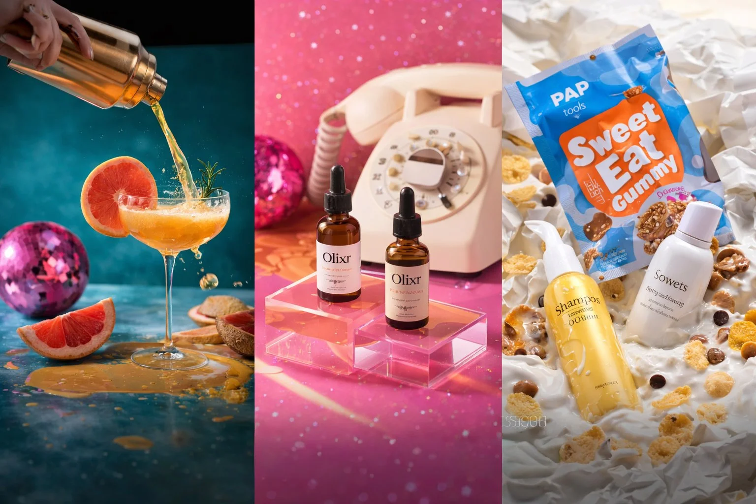 Yes. We hunt, hoard and custom-build whatever the visuals need -glassware, textures, weird objects, risers, stands, botanicals, retro finds, glossy plastics, ice cubes that don’t melt, fake spills, sparkles, foliage and all the other nonsense that makes products look irresistible. One less headache for you, and a massive win for the creative.